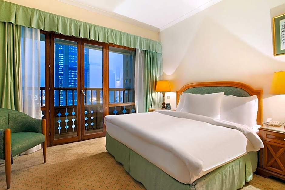 This stylish room features a city-view balcony and a full kitchen.